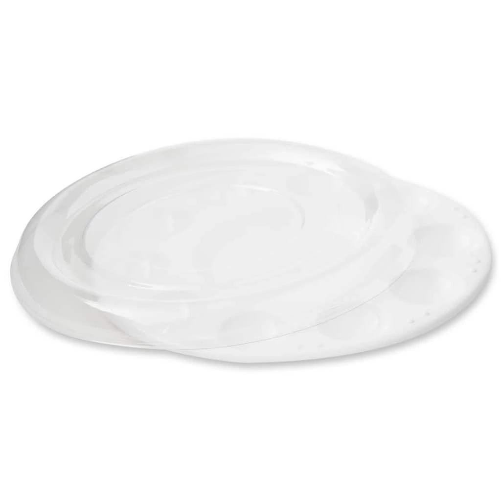 An accessory that all artists and crafters must have. These round plastic 10-well palettes allow you to mix colors. The clear lids keep your paints from drying out when you have to leave your project for a short period.