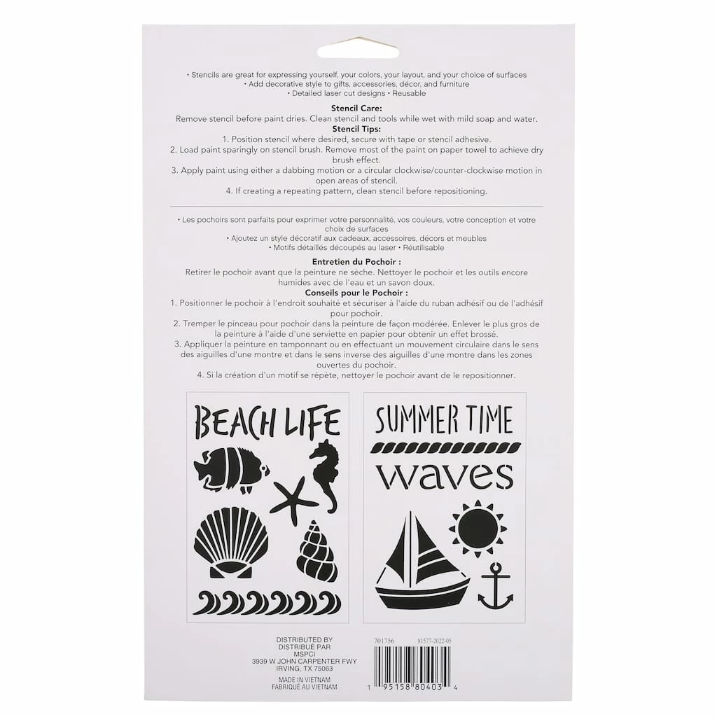 Stencils are great for expressing yourself, your colors, your layout and your choice of surfaces. Use these seaside designs to gifts, accessories, décor and furniture.