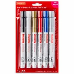 This paint pen set is a must-have for any craft enthusiast’s DIY kit. This set includes 6 broad line tip paint pens and 6 medium line tip paint pens that can be used to draw fun patterns on surfaces such as wood, plastic, metal and glass. They are perfect for embellishing glass vases, wooden plaques, plastic bowls and metal tins. The colors included in this set are White, Black, Red, Navy, Gold and Silver.