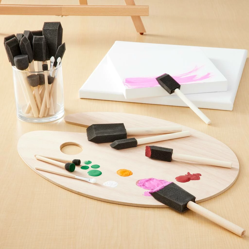 Flexible polyurethane foam brushes are ideal for the application of enamel, latex, oil paint, stain and varnish. They are designed to smooth out paint and cover correctly with fewer strokes, eliminating brush marks or loose bristles. Even the inexperienced user can achieve reliable professional results with these very practical brushes. They are essential to every crafter’s tool kit for a multitude of painting projects like applying finishes, decoupage or touch ups. Great for classrooms, various craft projects, staining or varnishing.