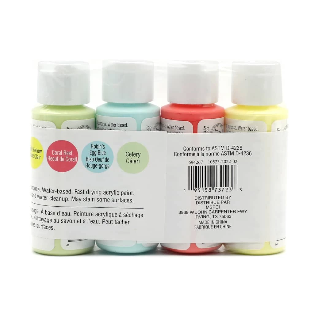 This must have set of paints are great to have in your craft room for your DIY art projects. This set of acrylic paints include Bright Yellow, Coral Reef, Robin’s Egg Blue and Celery.