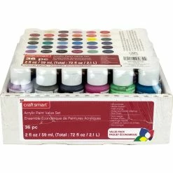 A great addition to your art supplies, this acrylic paint value set includes fast-drying colors. You can use them on wood, canvas, paper, and a variety of other surfaces. Permanently adheres to most craft surfaces, wood, bisque, canvas, clay, resin, terra cotta and more. The colors included are White, Ivory, Burgundy, Light Pink, Pink, Red, Bright Red, Crimson, Terra Cotta, Orange, Pure Pumpkin, Coral, Suede, Tan, Brown, Espresso, Bright Yellow, Sage Green, Olive Green, Aqua, Pale Blue, Turquoise, Mediterranean Blue, Dark Blue, Sailing Sky, Navy, Lavender, Purple, Grape Taffy, Plum, Orchid, Dark Grey, Black, Pink Blossom, Bright Mint and Teal Sea.