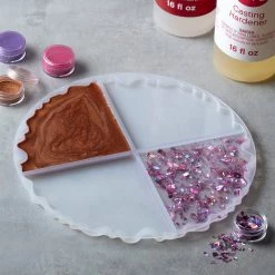 DIY a resin coaster with this silicone mold. Customize the resin coaster by adding glitter, powders, dyes and more!