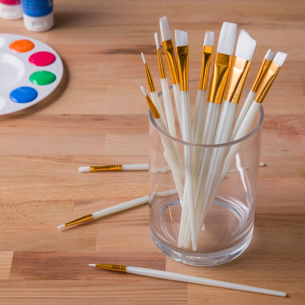 Hone your artistic skills with these paintbrushes by Craft Smart. You can use these white taklon brushes with your favorite oil paints, acrylics or watercolors. They come in different styles and sizes, and are suitable for fine detailing, angular shading, broad strokes and color washes.