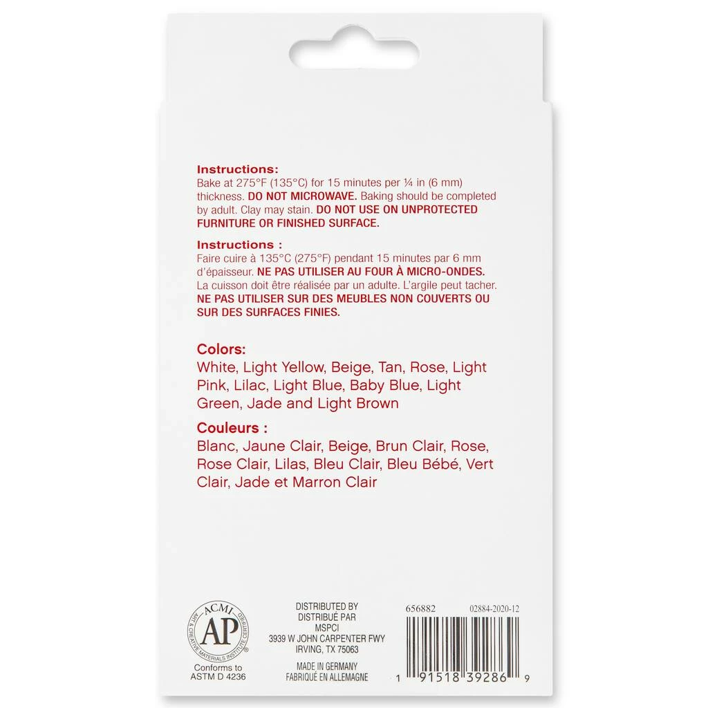 A creative way to stretch your imagination, this clay remains soft and pliable until you bake it. It is the perfect medium for jewelry, home dΓ©cor and many other projects. Includes colors white, light yellow, beige, tan, rose, light pink, lilac, light blue, baby blue, light green, jade and light brown.