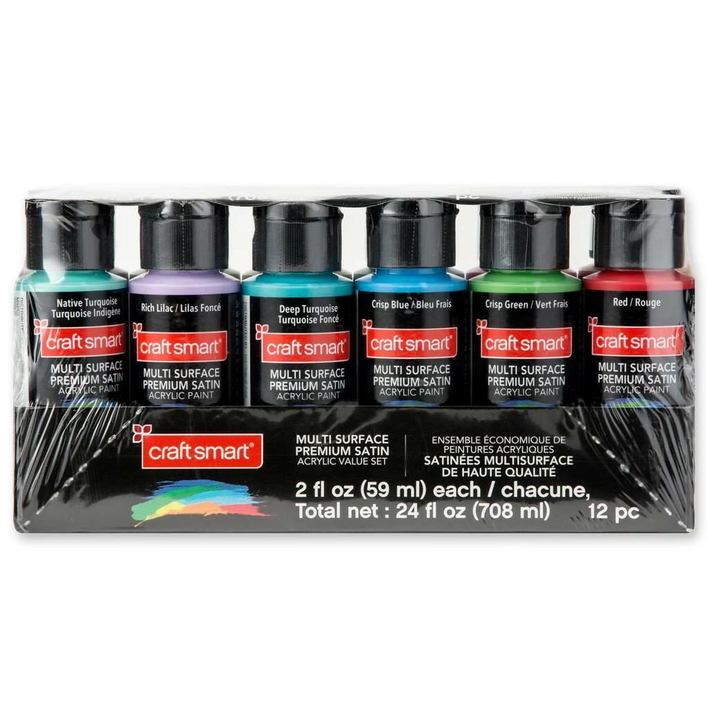 Create your own masterpiece with this Satin Acrylic Set by Craft Smart. Bundled with assorted colors, this set is a must-have for crafting enthusiasts and artists. You can use these acrylics to paint book shelves, ceramic figurines, glass bowls, frames, and more.