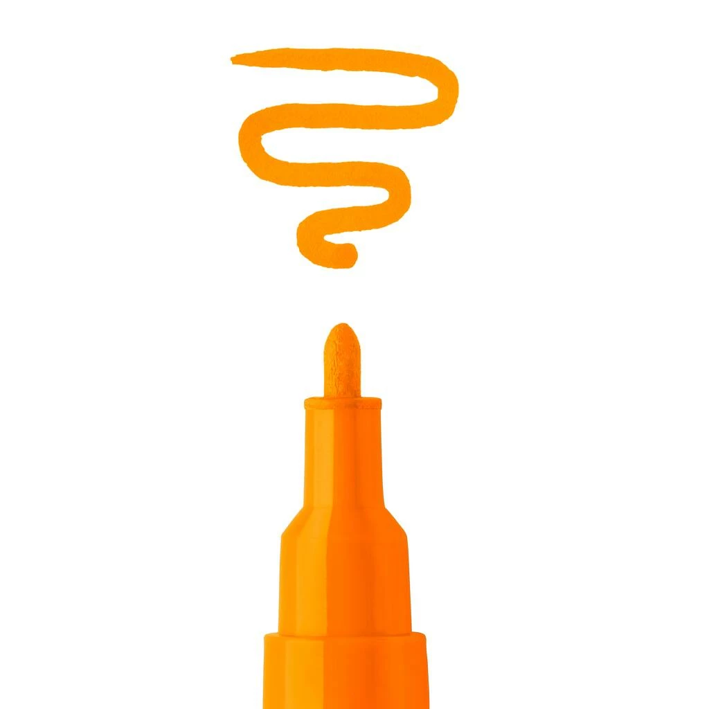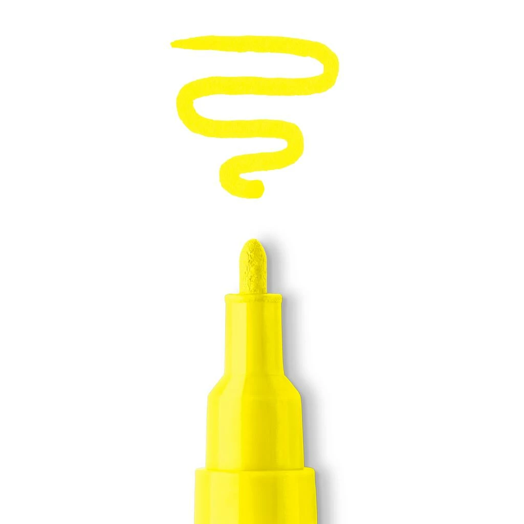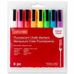 Write, draw and doodle designs on smooth surfaces with this set of chalk markers. These highly opaque wet-erasable markers can be used on chalkboards, windows, mirrors, ceramics and glass. The colors included are White, Fluorescent Pink, Fluorescent Red, Fluorescent Orange, Fluorescent Yellow, Fluorescent Green, Fluorescent Blue, and Fluorescent Violet.
