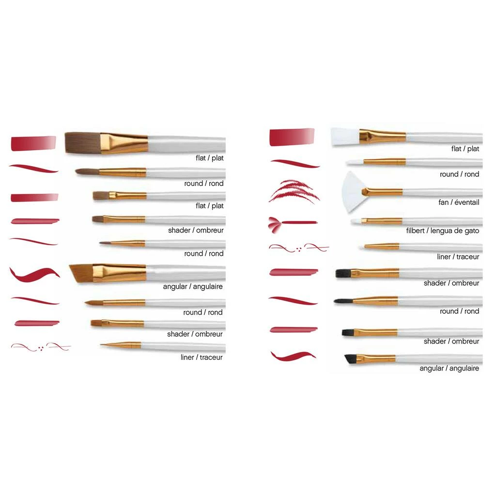 - Black Taklon brushes: #6 round, #8 shader, #4 shader, 1/4″ (0.6 cm) angular