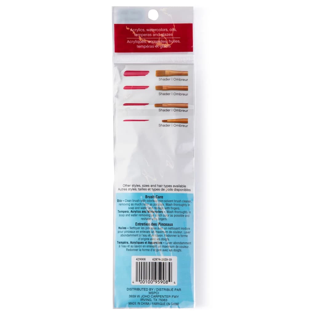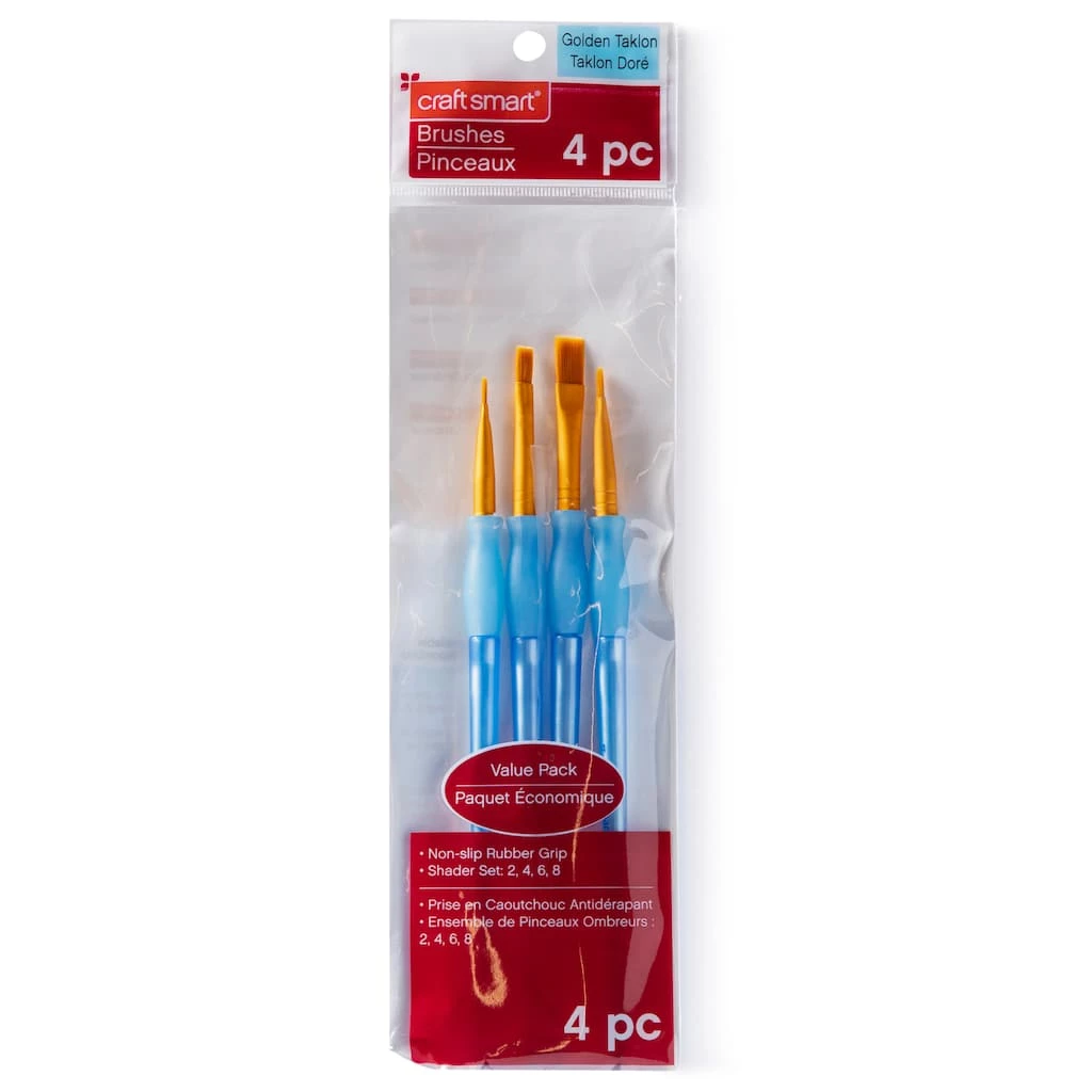 These long-lasting paint brushes offer the best in comfort and value. The non-slip pearlized polymer handles, with a patented soft rubber grip, are well known by crafters, decorative artists, tole painters, teachers and hobbyists. The specially selected multi-diameter filaments give the brushes extra paint holding capacity.