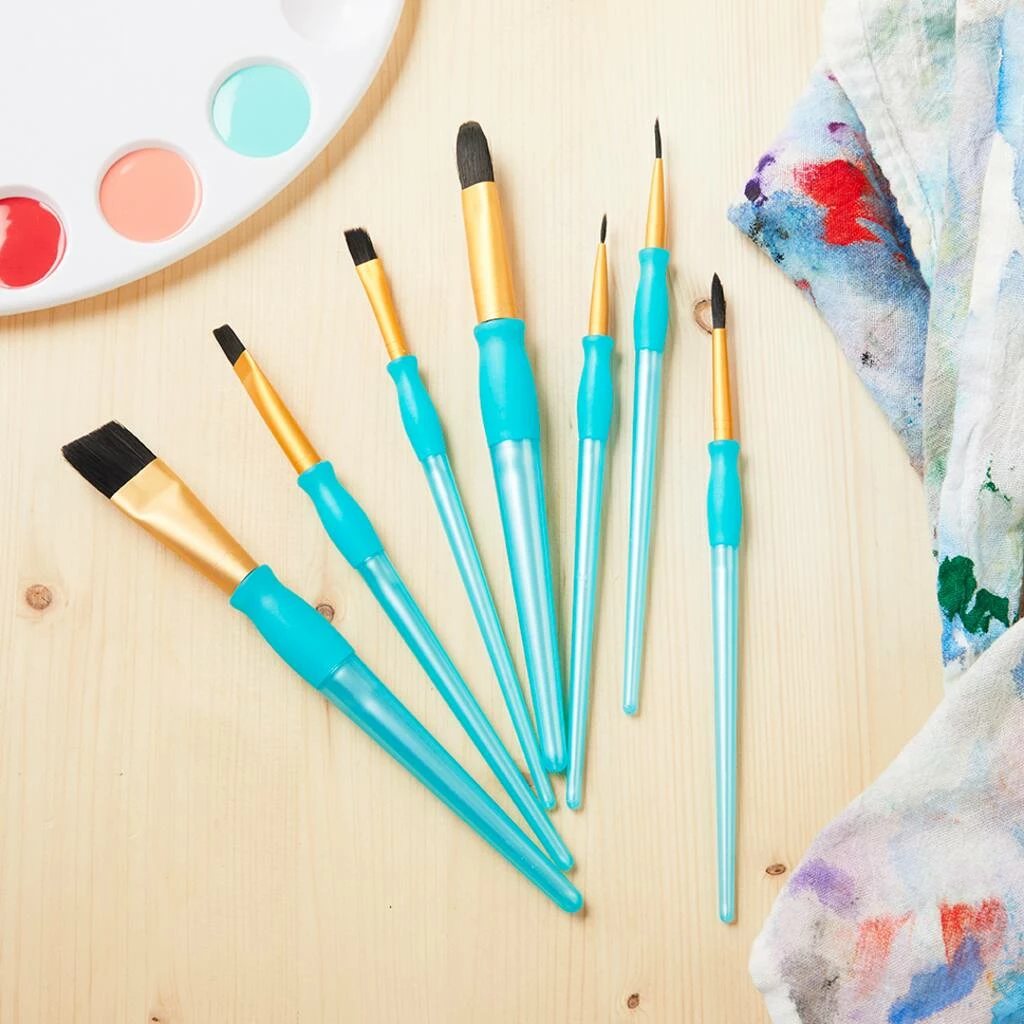 Create stunning works of art with these paintbrushes by Craft Smart. Dip them in watercolors or oil paints to experiment with various brush strokes or painting techniques. Featuring a non-slip rubber grip, these assorted paintbrushes are perfect for budding artists or craft enthusiasts.
