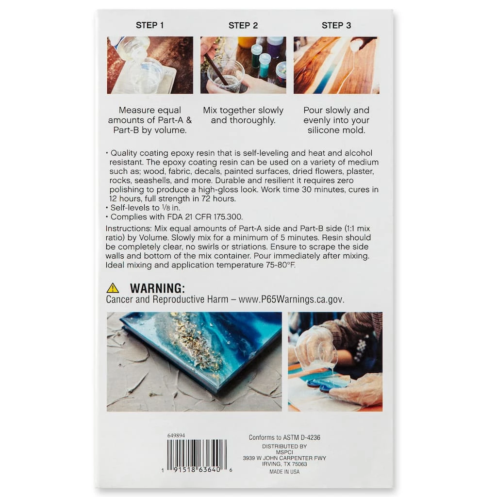 Quality coating epoxy resin that is self-leveling and heat and alcohol resistant. The epoxy coating resin can be used on a variety of surfaces.Β Multi-used on surfaces wood, fabric, decals, painted surfaces, dried flowers, plaster, rocks, seashells and more.Β
