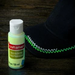 Fun, glow-in-the-dark paint adds luminescence to most surfaces when exposed to light. Use it alone or mix it with lighter colors of Craft Smart® Acrylic Paints, including the neon colors. This paint is great for decorating Halloween crafts or applying to stenciled stars on kids’ bedroom walls. Apply this glow-in-the-dark paint to: walls, wood, Halloween costumes and décor, craft pumpkins, candles, glass, ceramics, Styrofoam®, poster board, cardstock and more.