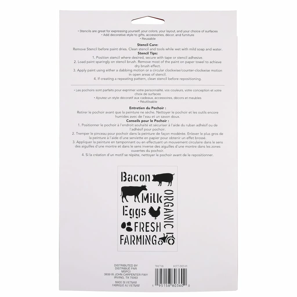 This sheet of stencils from Craft Smart can be used to add a lovely bit of farmhouse charm in your kitchen dΓ©cor and craft projects. Use the animal silhouettes and food-related words to create fun wall plaques, decorate cannisters for your counter, paint accents on breakfast nook throw pillows and more!