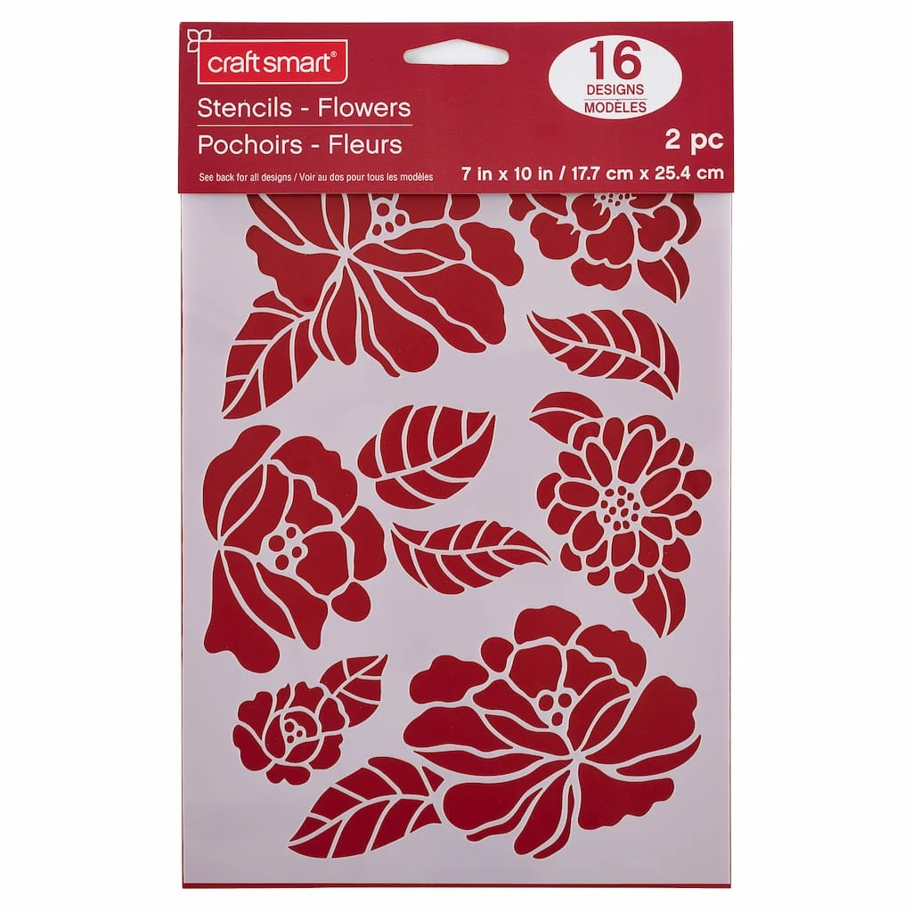 This sheet of stencils from Craft Smart can be used to add a lovely bit of charm to your garden décor and craft projects. Use these floral designs to create fun wall plaques, decorate planters, paint accents on patio throw pillows and more!