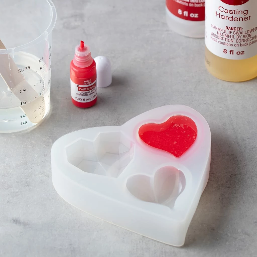 DIY a resin hearts with this silicone mold. Customize each heart by adding glitter, powders, dyes and more!