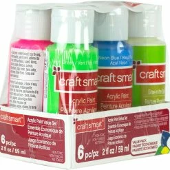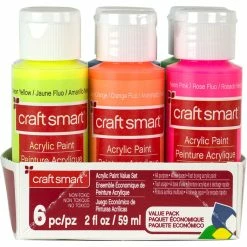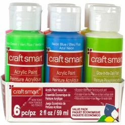 Create glow-in-the-dark crafts or decor accessories using this acrylic paint set by Craft Smart. These neon paints are all purpose and can be used on various surfaces like wood, paper, ceramic and resin. In addition to neon paints, this assortment also contains a glow-in-the-dark paint to complete your projects.