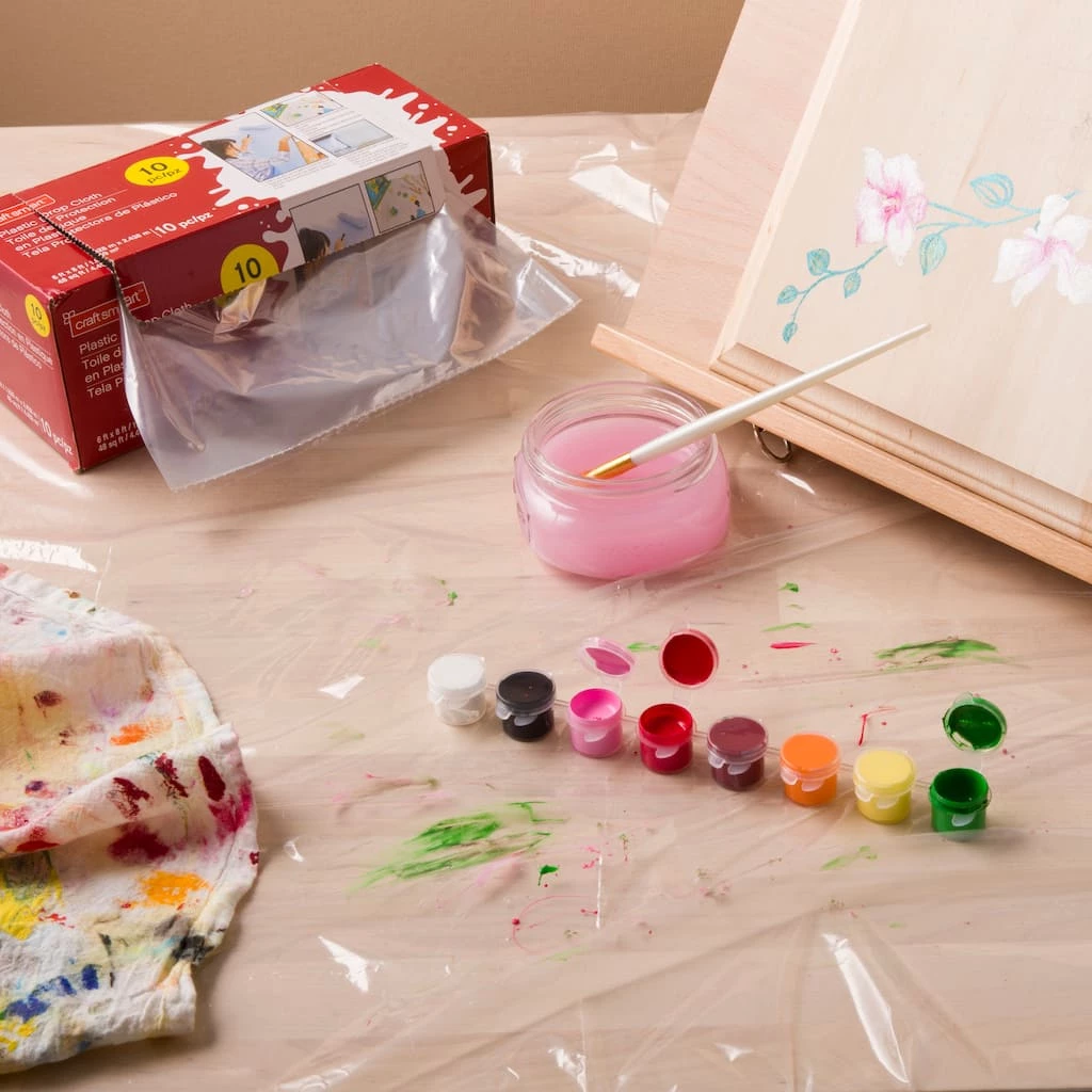 Keep your dining table, sofa set and other surfaces safe from spills and dust using this plastic drop cloth by Craft Smart. You can also use this see-through plastic cloth to cover your floor while you paint your walls.Β