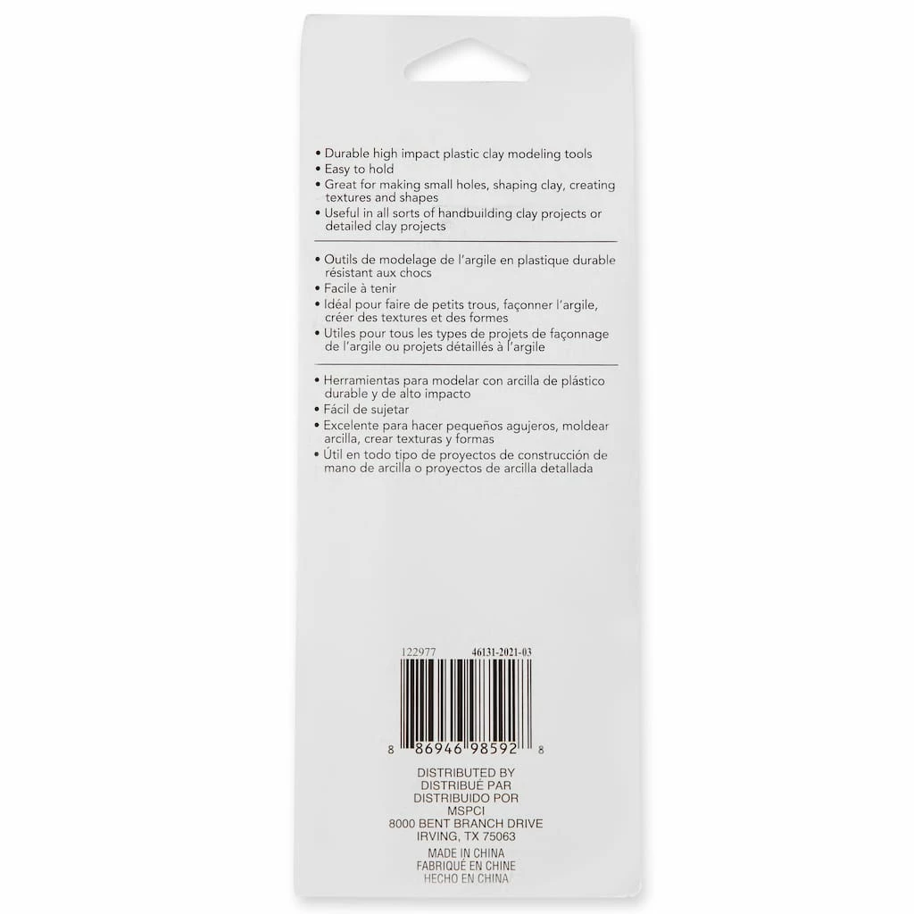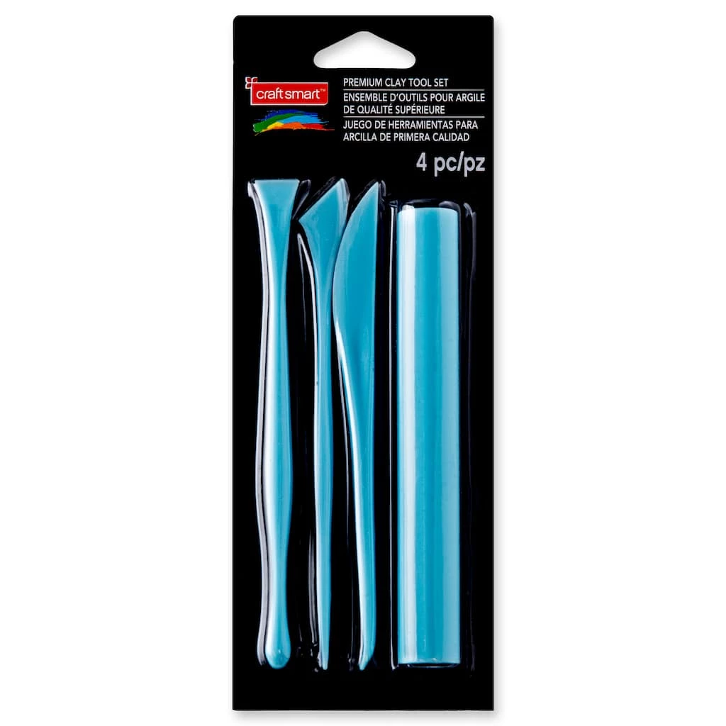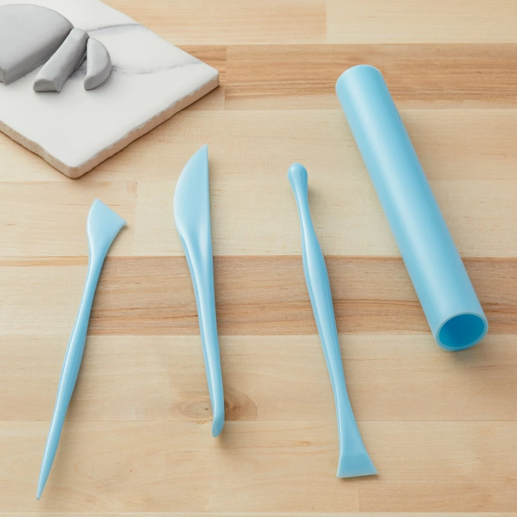 Specially tailored for clay work and sculpting, these plastic modeling tools are perfect for use with oven-bake clay. Use the roller to flatten clay and the three other tools to add detail, cut and shape any clay project.Β