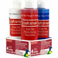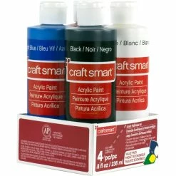 Get this paint set by Craft Smart for your craft and art projects. These all-purpose acrylic paints can be used on various surfaces, including wood, canvas, paper, plaster and resin. They offer a matte finish and can be used with varnishes to create different finishes. Complete with four primary colors, this set is the perfect addition to your art kit.