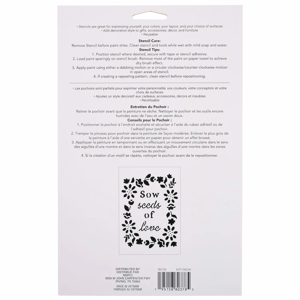 This sheet of stencils from Craft Smart can be used to add a lovely flourish to your home décor and craft projects. Use this charming message and flower border to embellish wall plaques, decorate planters, paint accents on throw pillows and more!
