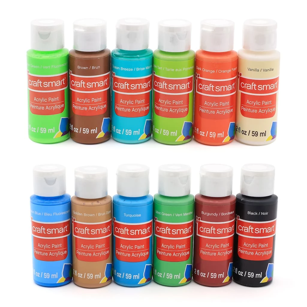 Paint your mixed media projects with this super value acrylic paint set. Fast-drying and water-based, these acrylic paints can be used for a variety of painting techniques. Use your favorite paint brushes to apply these paints on paper, canvas or other surfaces. The colors included are Bright Red, Bright Yellow, Bright Blue, Purple, Red, Yellow, Mediterranean Blue, Violet, Cherry Cobbler, Dark Yellow, Dark Blue, Plum, Burgundy, Mint Green, Turquoise, Golden Brown, Vanilla, Dark Orange, Apple Tart, Ocean Breeze, Brown, Light Pink, Orange, Grass Green, Pool Blue, Grey, Pink Blast, Coral, Holiday Green, Pale Blue, Dark Grey, Bright Pink, Light Yellow, Navy, Grape Taffy, White Pearl, Neon Blue, Neon Green, Neon Orange, Neon Pink, Neon Yellow, Gold, Bright Gold, Silver, and 2 White and Black.