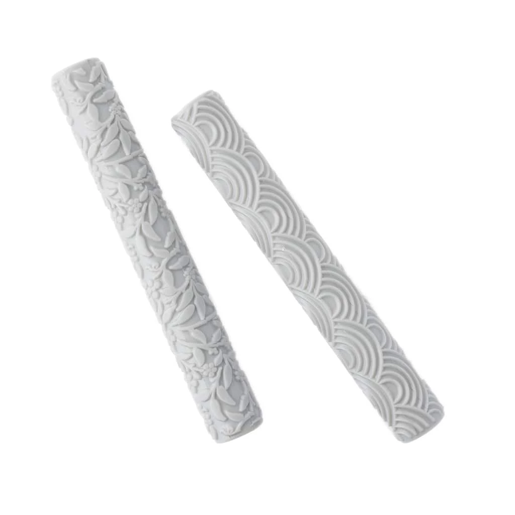 Add a fun design to your clay projects with these texture rollers by Craft Smart. Simply roll out and smooth your clay and press the roller on the clay with even pressure.